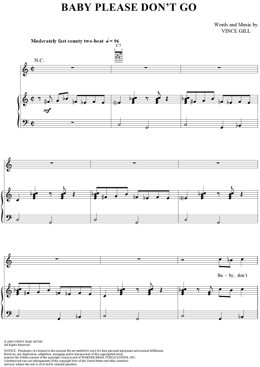 Digital Sheet Music for Baby Please Don't Go by Vince Gill scored for Piano/Vocal/Chords; id:241327