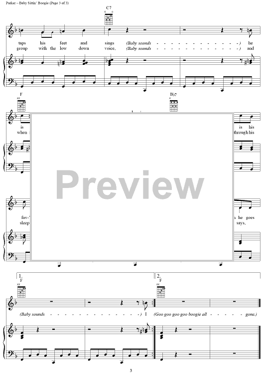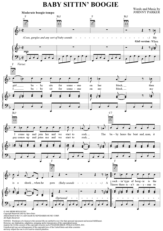 Digital Sheet Music for Baby Sittin' Boogie by Johnny Parker scored for Piano/Vocal/Chords; id:254660