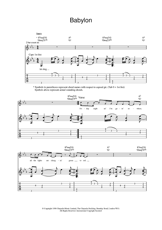 Digital Sheet Music for Babylon by David Gray scored for Guitar Tab; id:377069