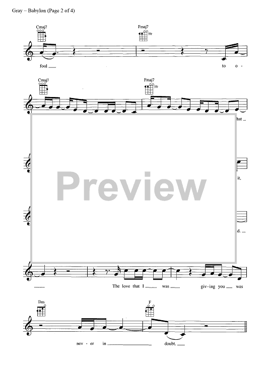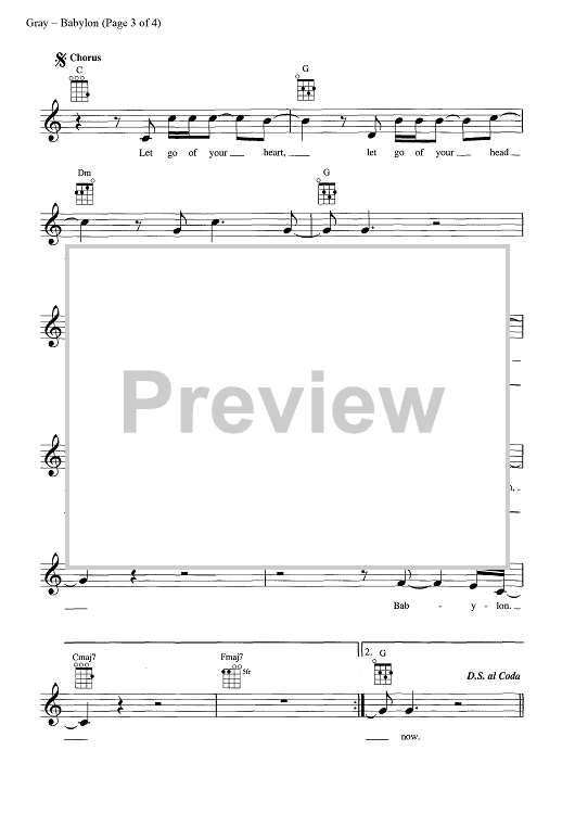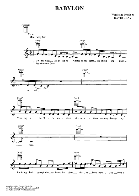 Digital Sheet Music for Babylon by David Gray scored for Ukulele/Vocal; id:444743