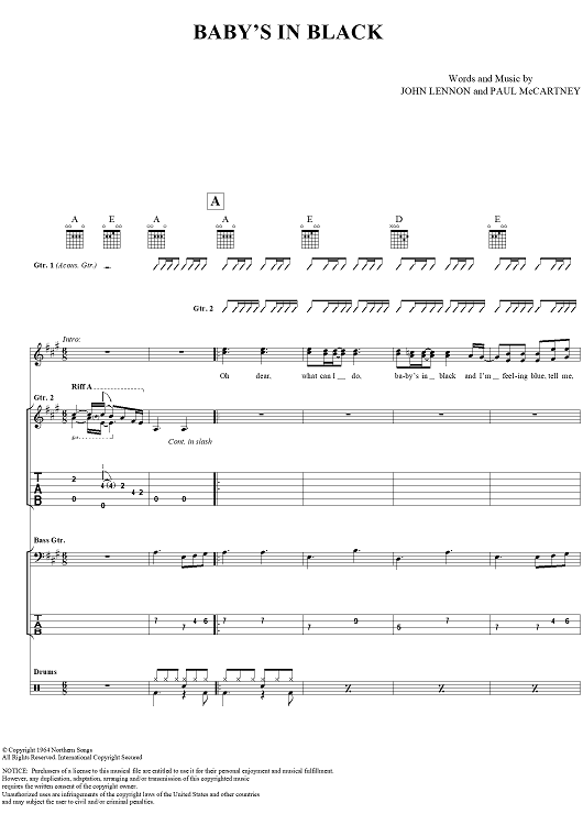 "Baby's in Black" Sheet Music by The Beatles