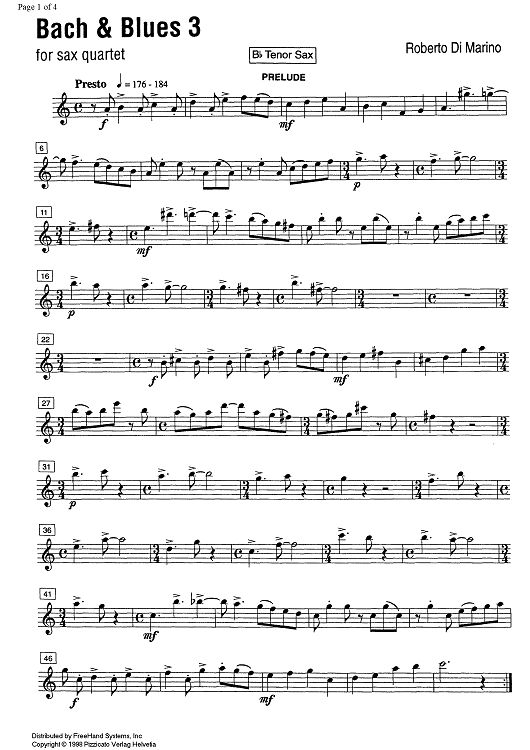 "Bach and Blues 3 - B-flat Tenor Saxophone" Sheet Music by Roberto Di Marino