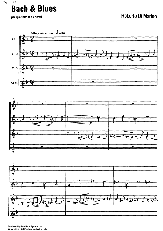 Digital Sheet Music for Bach and Blues - Score by , Roberto Di Marino scored for 4 Clarinets; id:330783