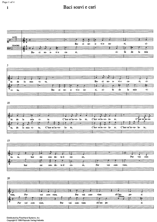 "Baci soavi e cari" Sheet Music by Alessandro Orologio