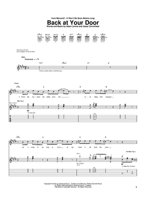 Digital Sheet Music for Back At Your Door by Adam Levine, Jesse Carmichael, Maroon 5 scored for Guitar Tab; id:401087