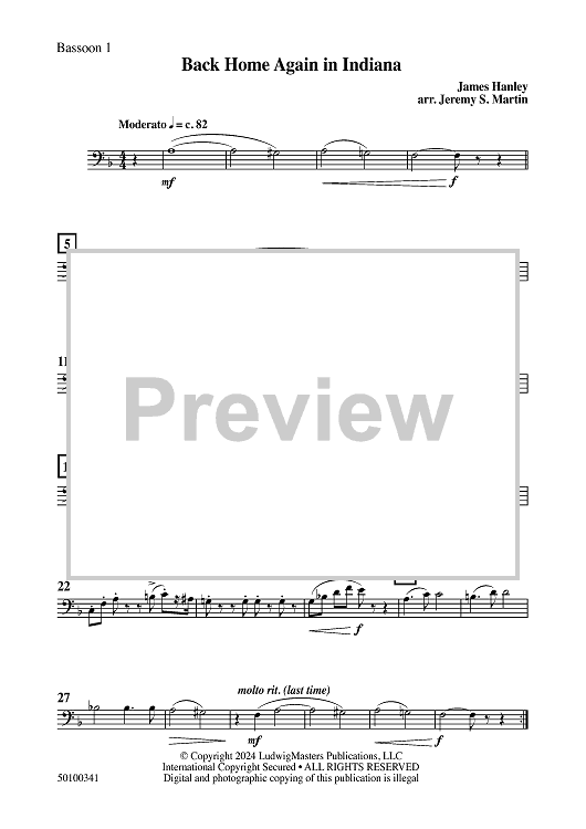 Digital Sheet Music for Back Home Again in Indiana - Bassoon 1 by James F. Hanley, Jeremy S. Martin scored for Concert Band; id:504485