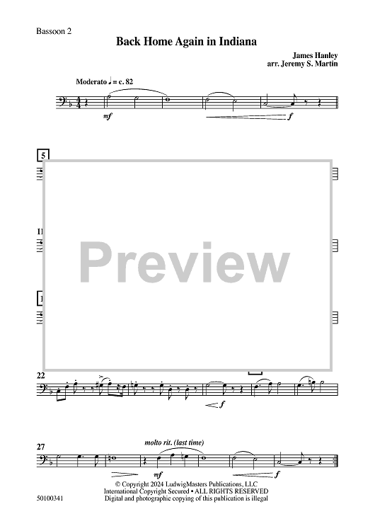 Digital Sheet Music for Back Home Again in Indiana - Bassoon 2 by James F. Hanley, Jeremy S. Martin scored for Concert Band; id:504486