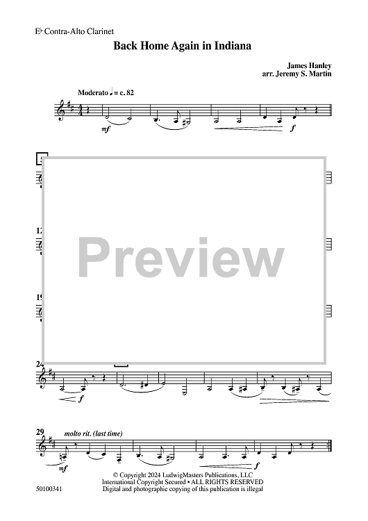 Digital Sheet Music for Back Home Again in Indiana - Eb Contra Alto Clarinet by James F. Hanley, Jeremy S. Martin scored for Concert Band; id:504483