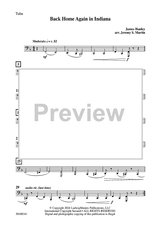 Digital Sheet Music for Back Home Again in Indiana - Tuba by James F. Hanley, Jeremy S. Martin scored for Concert Band; id:504503