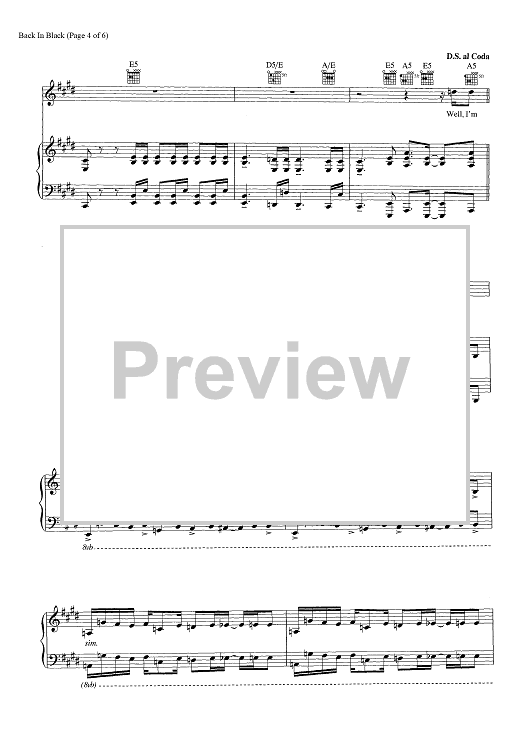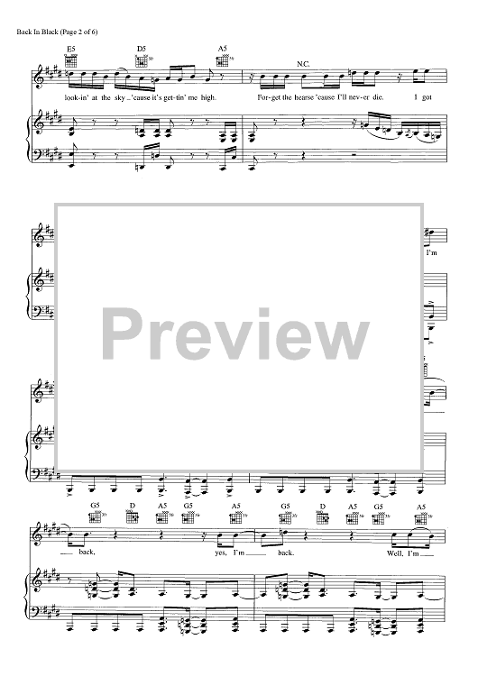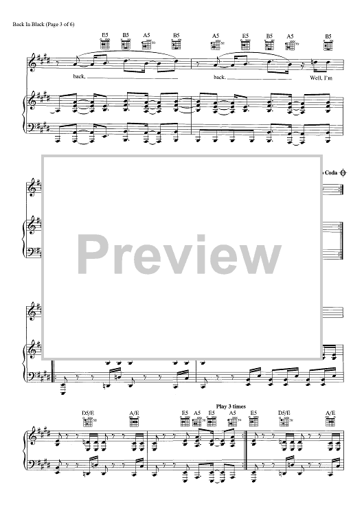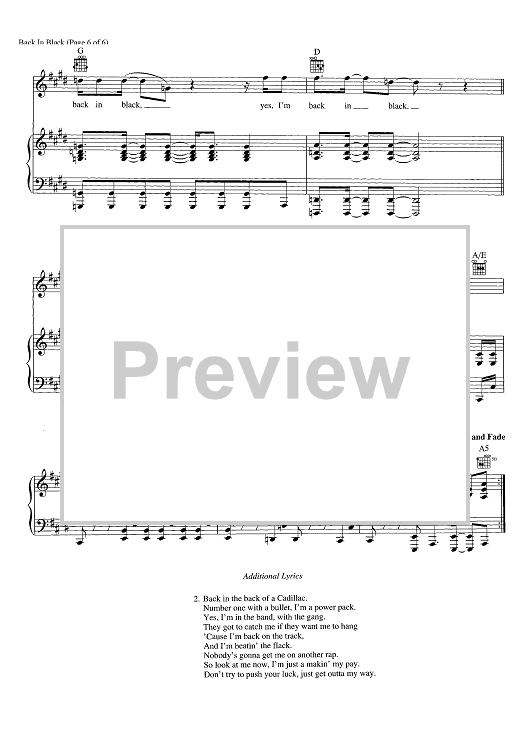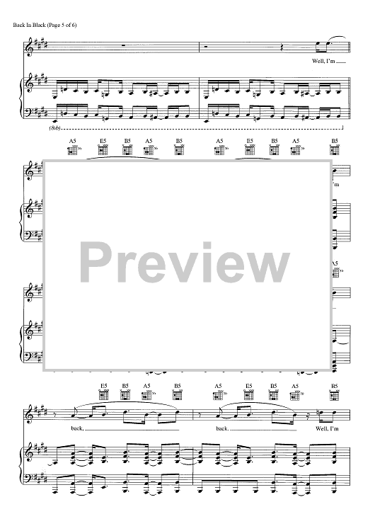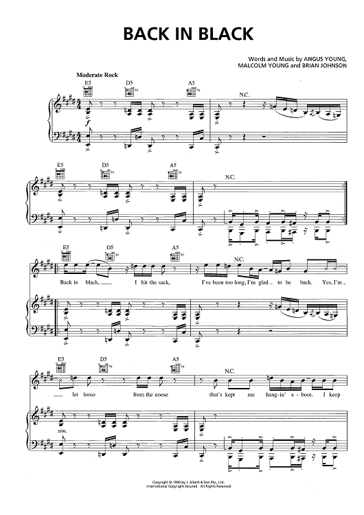 Digital Sheet Music for Back In Black by AC/DC, Brian Johnson, Angus Young, Malcolm Young scored for Piano/Vocal/Chords; id:465887