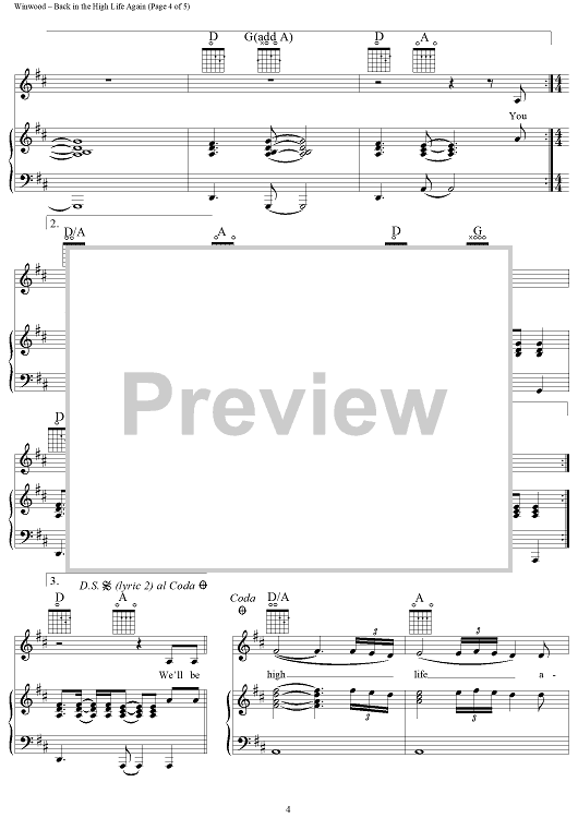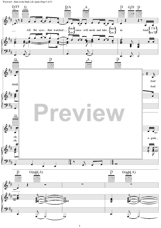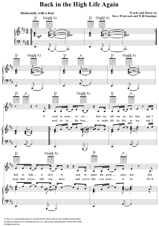 Digital Sheet Music for Back In the High Life Again by Will Jennings, Steve Winwood scored for Piano/Vocal/Chords; id:111357