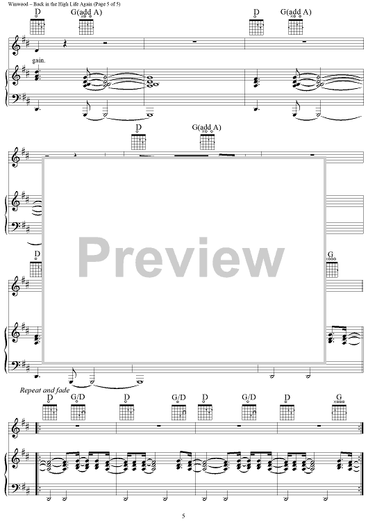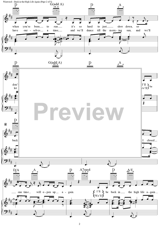 "Back In the High Life Again" Sheet Music by Steve Winwood