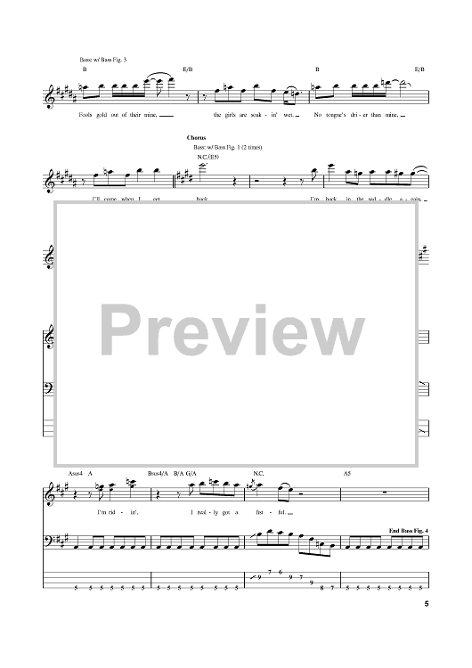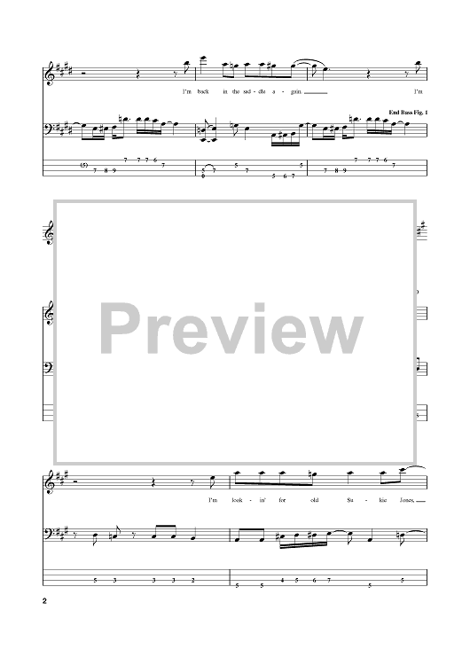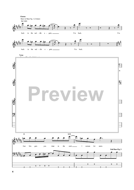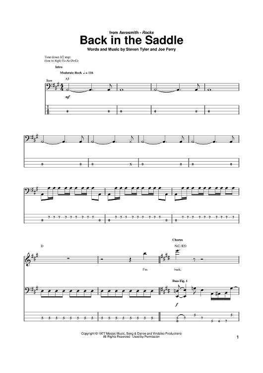 Digital Sheet Music for Back In The Saddle by Aerosmith, Steven Tyler, Joe Perry scored for Bass Tab; id:381482