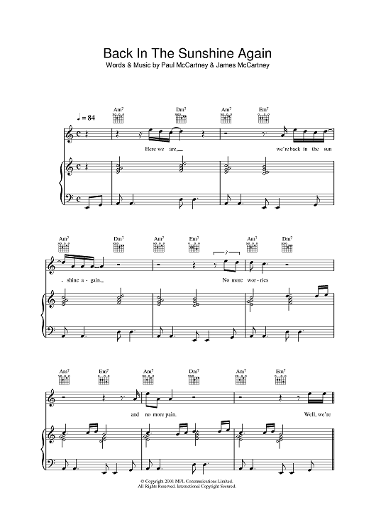 Digital Sheet Music for Back In The Sunshine Again by Paul McCartney, James McCartney scored for Piano/Vocal/Chords; id:389235