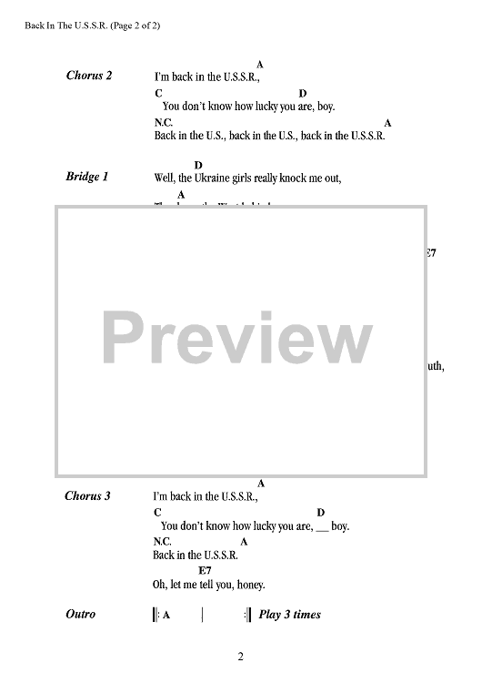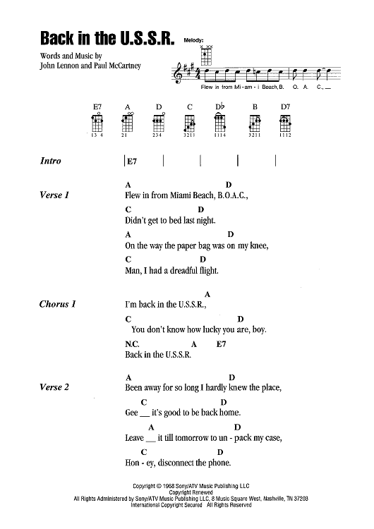 Digital Sheet Music for Back In The USSR by Paul McCartney, The Beatles, John Lennon scored for Ukulele/Vocal; id:466331