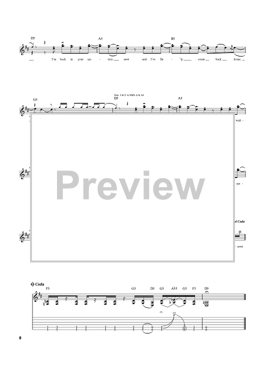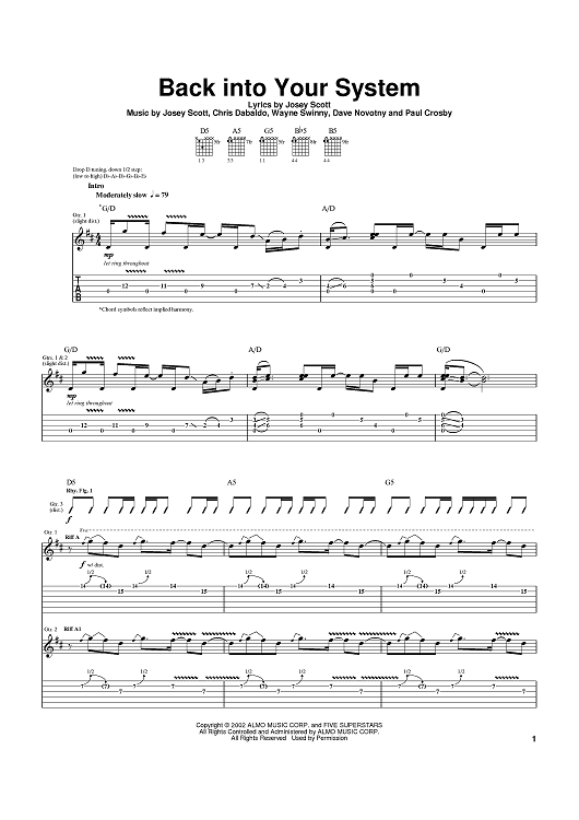 Digital Sheet Music for Back Into Your System by Saliva, Chris Dabaldo, Josey Scott, Wayne Swinny scored for Guitar Tab; id:370702