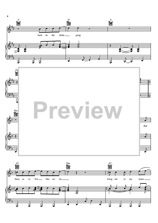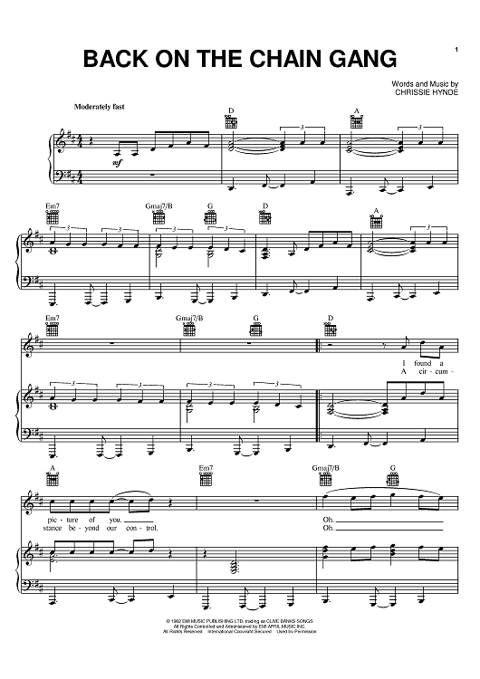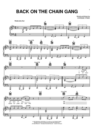 Digital Sheet Music for Back On The Chain Gang by The Pretenders, Chrissie Hynde scored for Piano/Vocal/Chords; id:368647