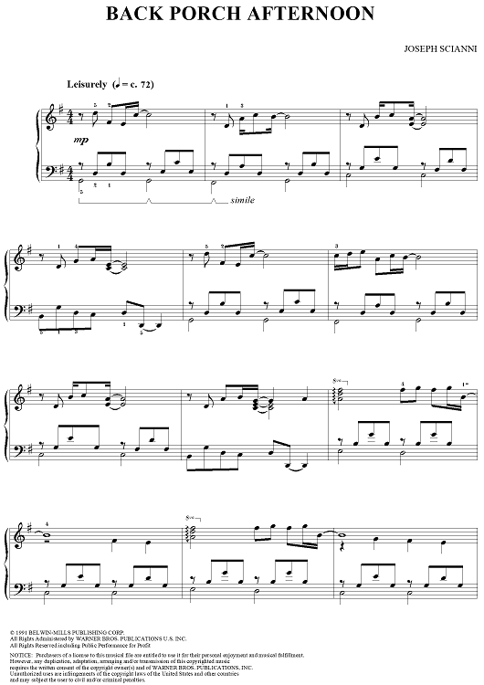 "Back Porch Afternoon" Sheet Music by Joseph Scianni