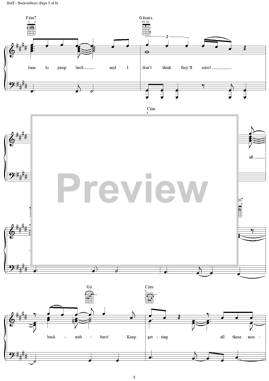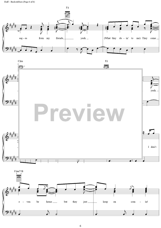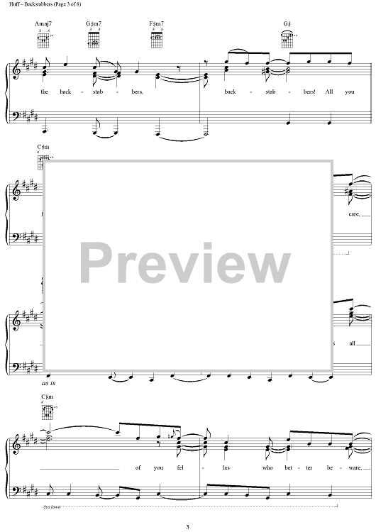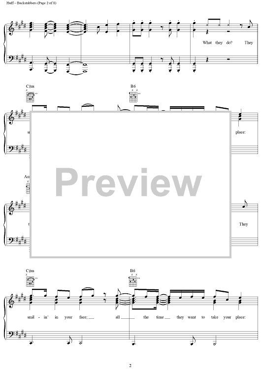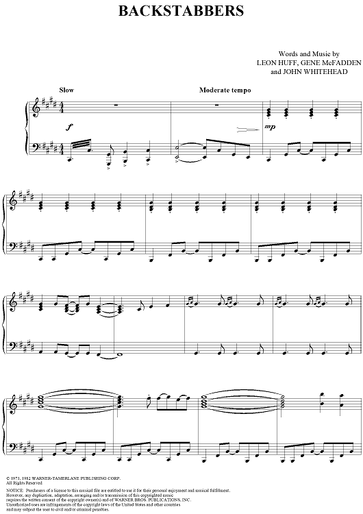 Digital Sheet Music for Backstabbers by Leon Huff, John Whitehead, Gene McFadden, The O'Jays scored for Piano/Vocal/Chords; id:266190