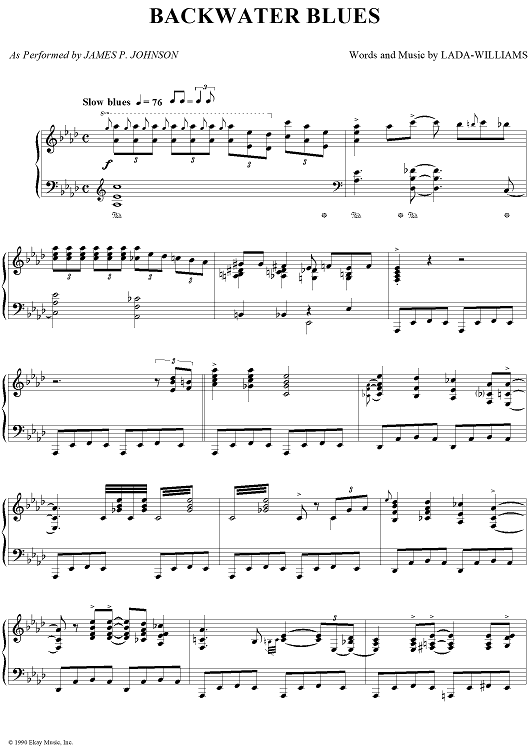 Digital Sheet Music for Backwater Blues by Lada-Williams, James P. Johnson scored for Piano Solo; id:120154