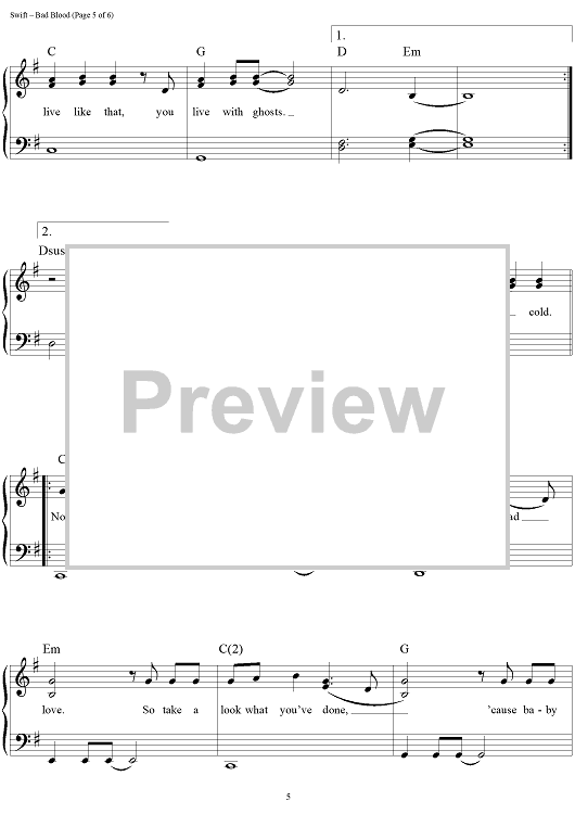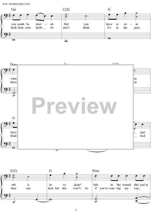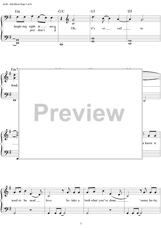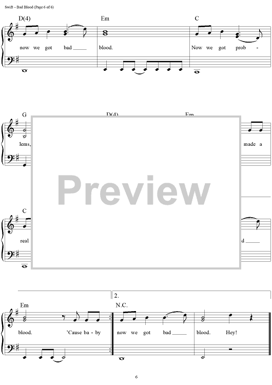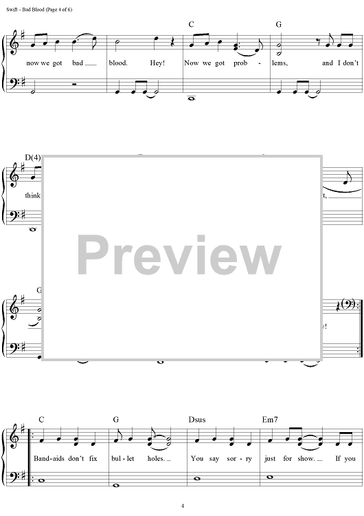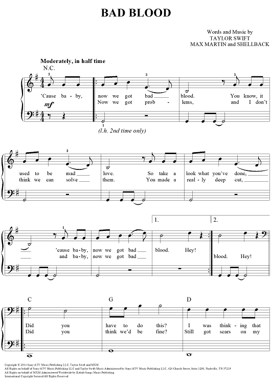 Digital Sheet Music for Bad Blood by Max Martin, Taylor Swift, Shellback scored for Easy Piano/Vocal/Chords; id:460301