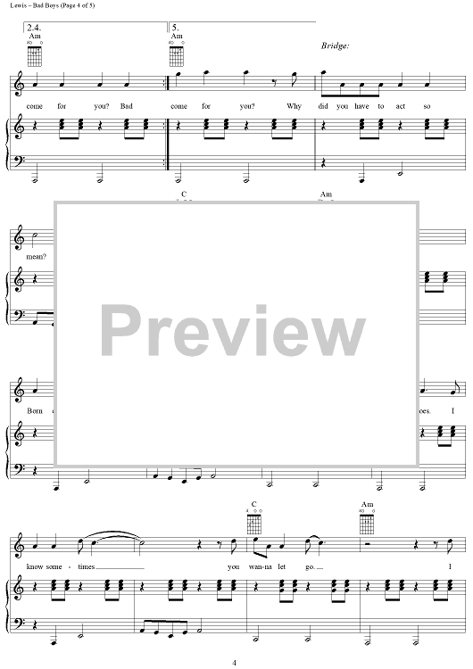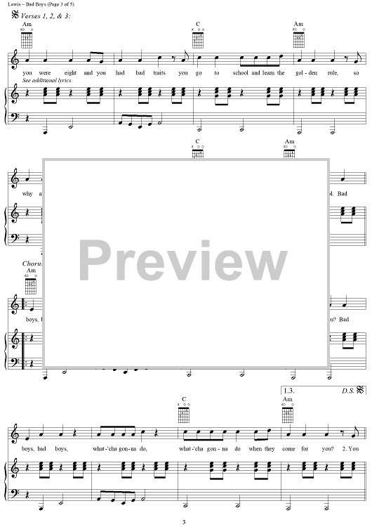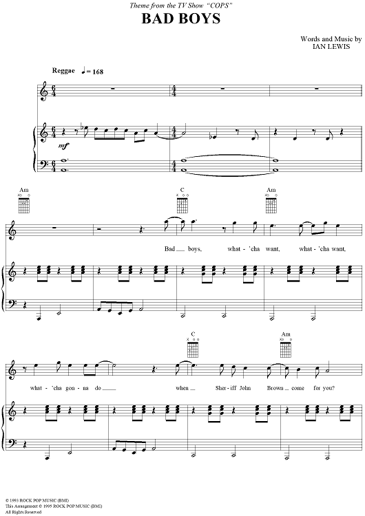 Digital Sheet Music for Bad Boys (Theme from "Cops") by Ian Lewis scored for Piano/Vocal/Chords; id:202198