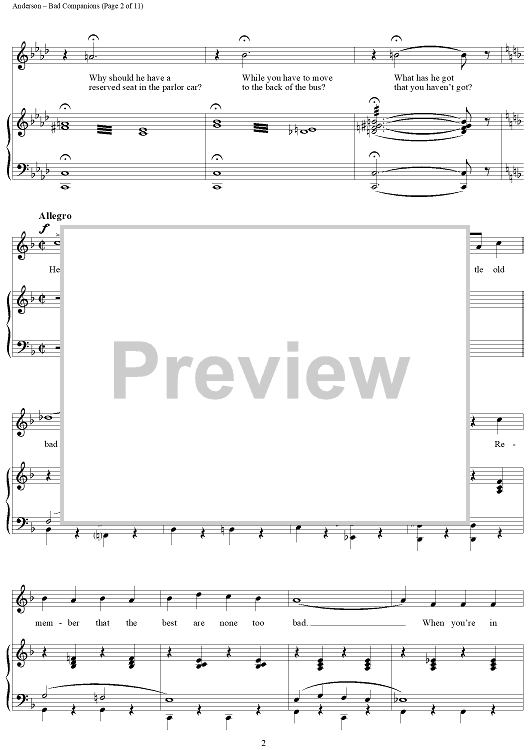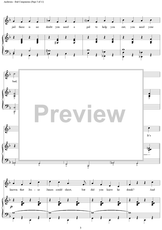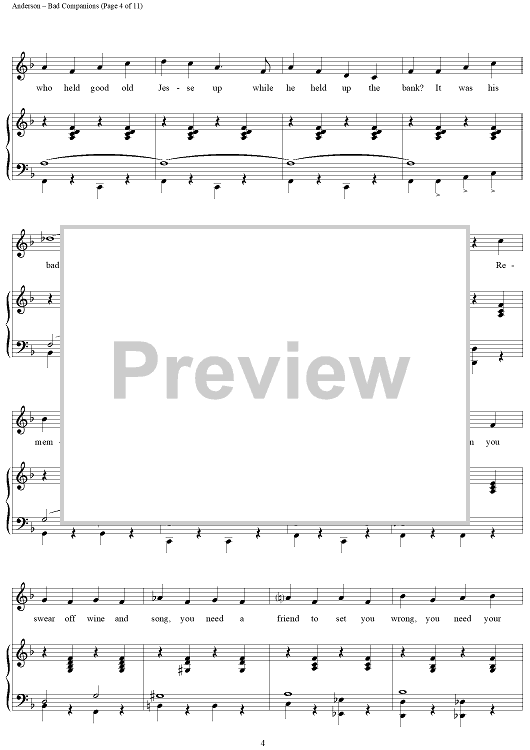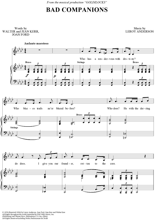 Digital Sheet Music for Bad Companions by Leroy Anderson, Walter Kerr, Jean Kerr, Joan Ford scored for Piano/Vocal; id:183975