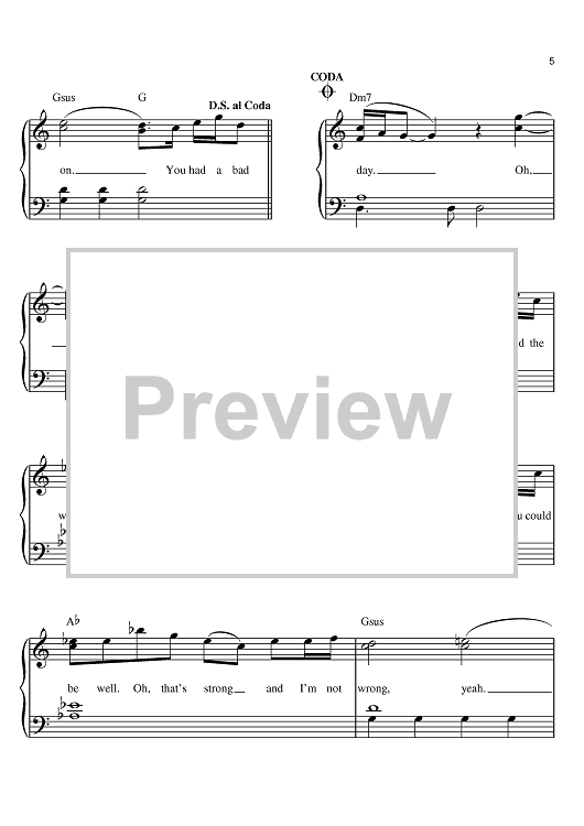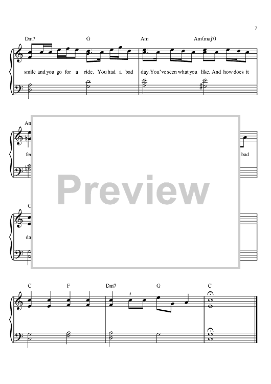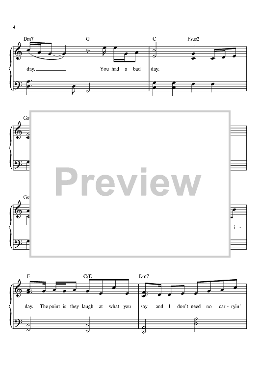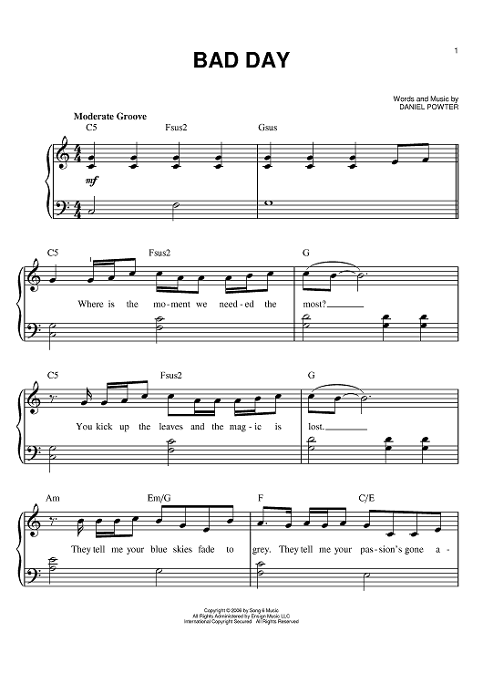 Digital Sheet Music for Bad Day by Daniel Robert Powter scored for Easy Piano; id:393561