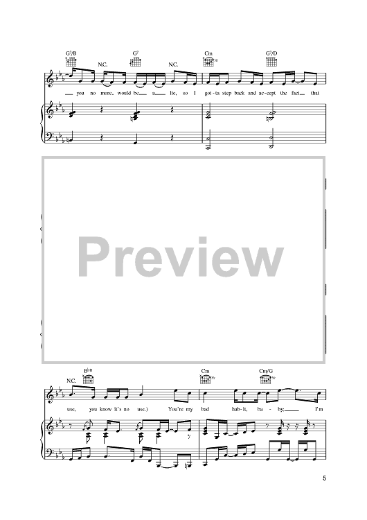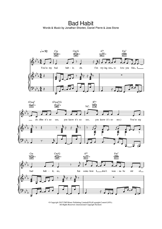 Digital Sheet Music for Bad Habit by Daniel Pierre, Jonathan Shorten, Joss Stone scored for Piano/Vocal/Chords; id:397121
