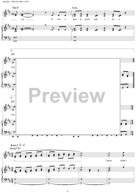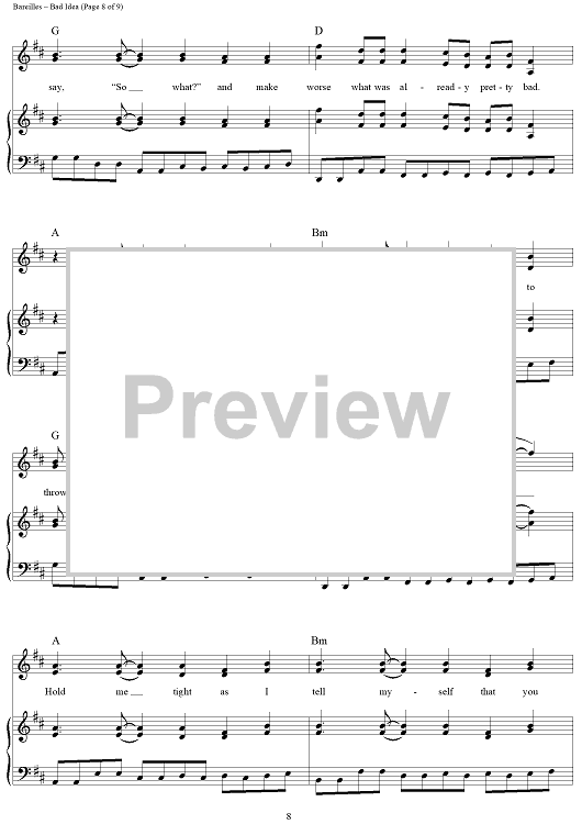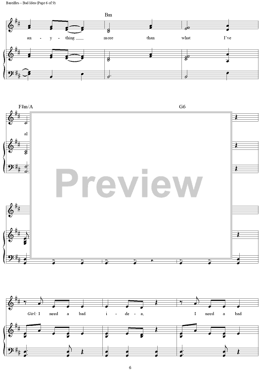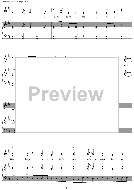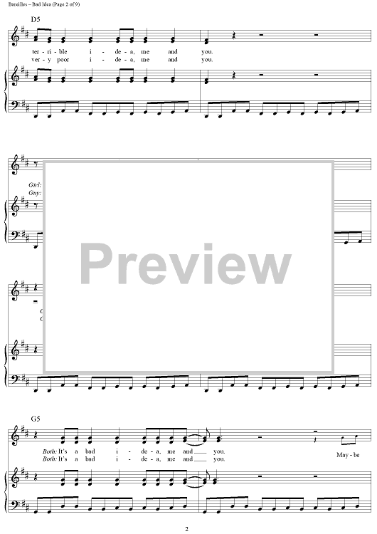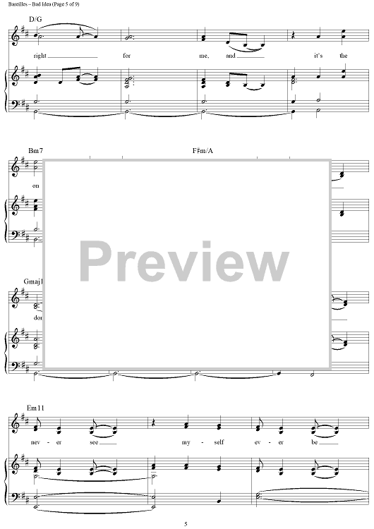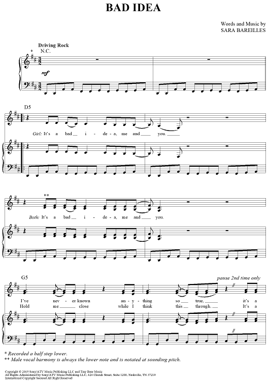 Digital Sheet Music for Bad Idea by Sara Bareilles scored for Piano/Vocal/Chords; id:457609