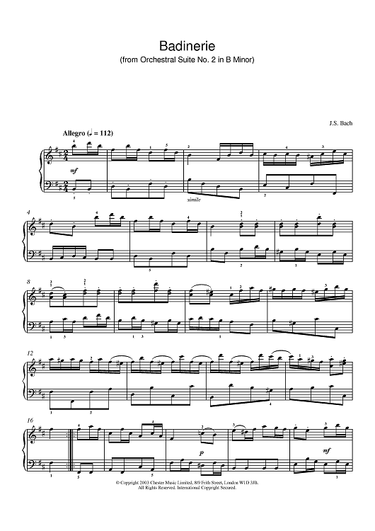 Digital Sheet Music for Badinerie (from Orchestral Suite No. 2 in B Minor) by Johann Sebastian Bach scored for Piano; id:378878