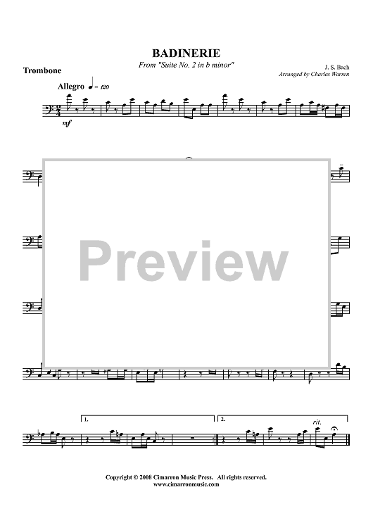 "Badinerie from "Suite #2 in B minor" - Trombone" Sheet Music by Johann Sebastian Bach