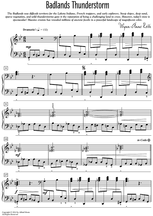 Digital Sheet Music for Badlands Thunderstorm by Wynn-Anne Rossi scored for Piano; id:469702