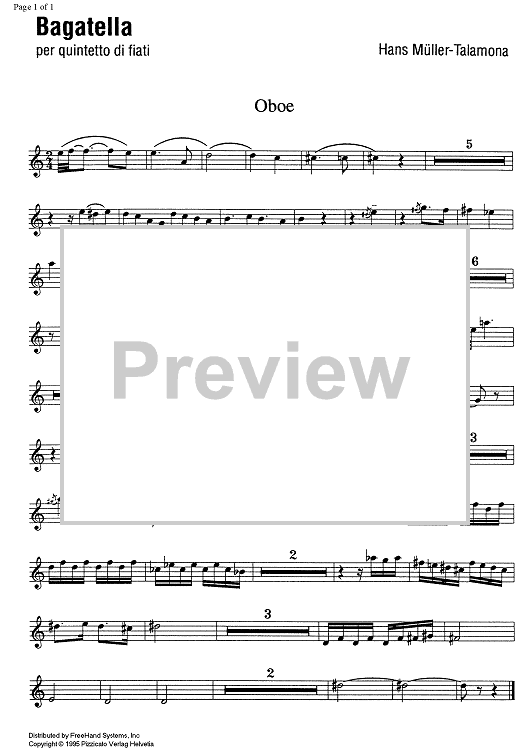 "Bagatella - Oboe" Sheet Music by Hans Müller-Talamona