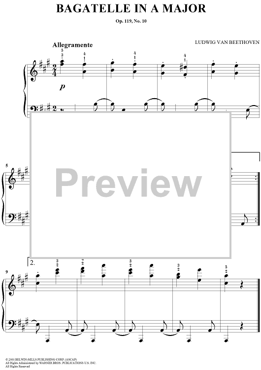 "Bagatelle in A Major" Sheet Music by Ludwig van Beethoven
