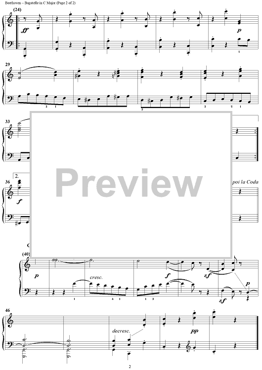 "Bagatelle in C Major" Sheet Music by Ludwig van Beethoven