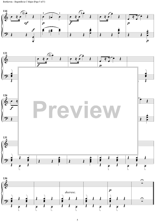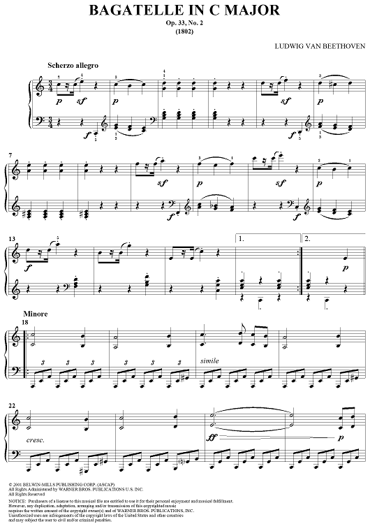 "Bagatelle in C Major" Sheet Music by Ludwig van Beethoven