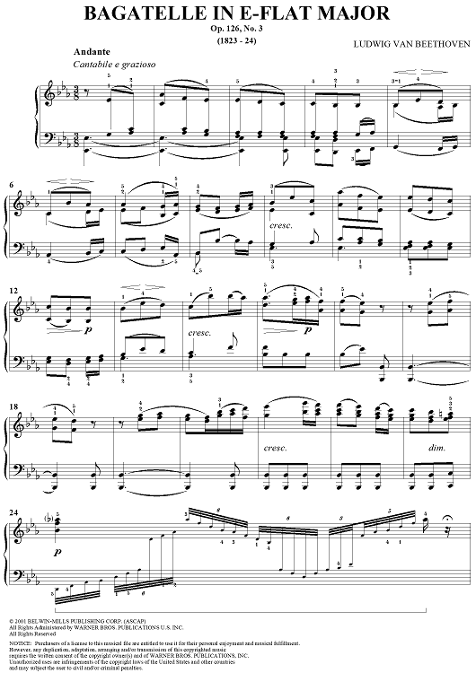 "Bagatelle in E-flat Major" Sheet Music by Ludwig van Beethoven