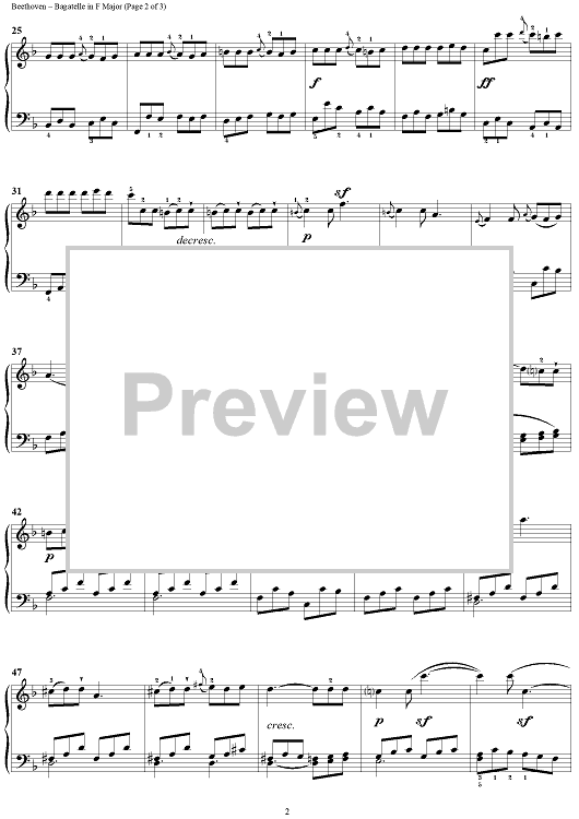 Digital Sheet Music for Bagatelle in F Major by Ludwig van Beethoven, Donald Beattie, Delayna Beattie scored for Easy Piano; id:315265