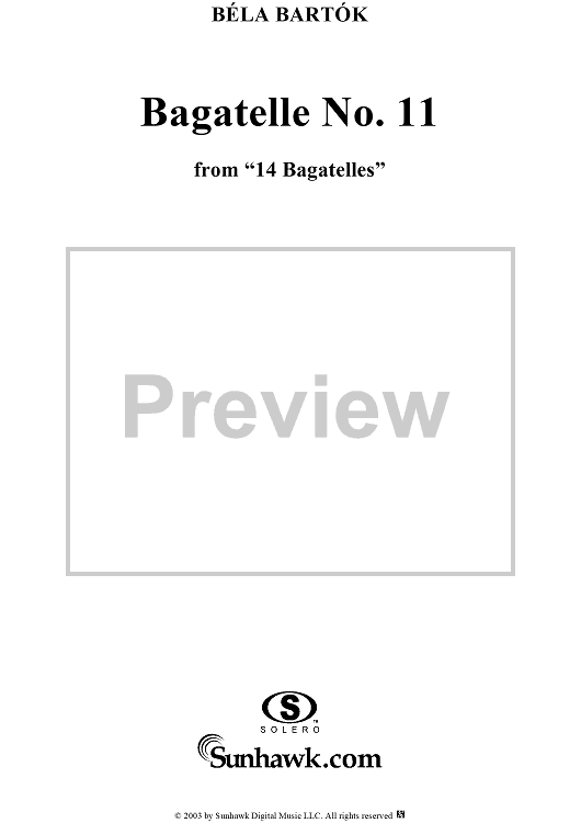 "Bagatelle No. 11 "Allegretto molto rubato"" Sheet Music by Bela Bartok