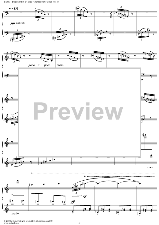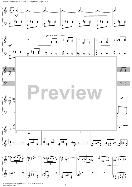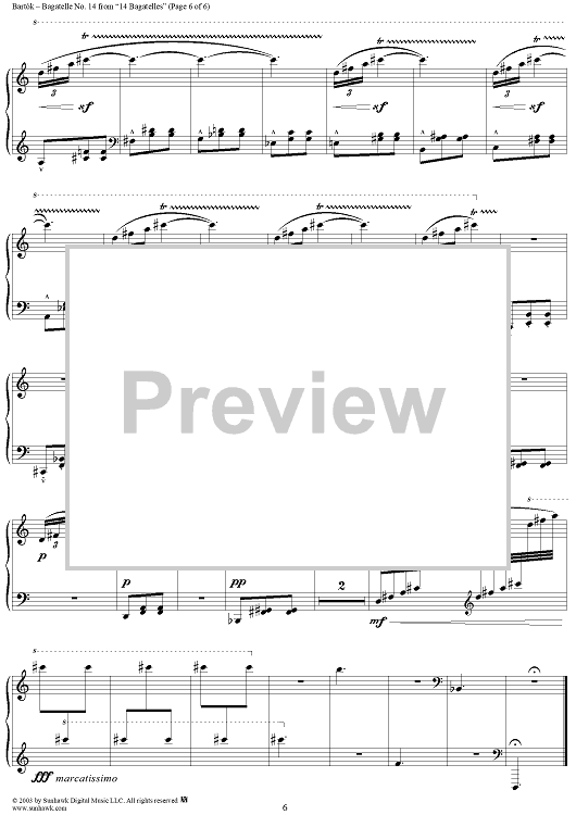 Digital Sheet Music for Bagatelle No. 14 "Presto" by Bela Bartok scored for Piano Solo; id:293713
