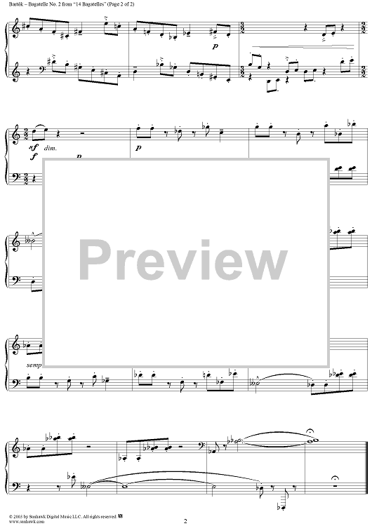 Digital Sheet Music for Bagatelle No. 2 "Allegro Giocoso" by Bela Bartok scored for Piano Solo; id:293701