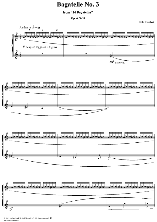 "Bagatelle No. 3 "Andante"" Sheet Music by Bela Bartok