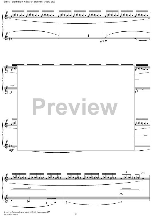 Digital Sheet Music for Bagatelle No. 3 "Andante" by Bela Bartok scored for Piano Solo; id:293702