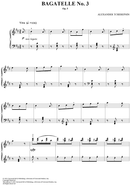 "Bagatelle No. 3" Sheet Music by Alexander Tcherepnin