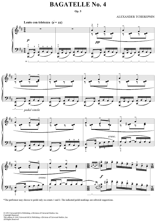 "Bagatelle No. 4" Sheet Music by Alexander Tcherepnin