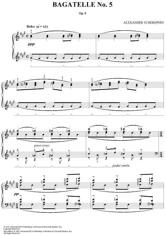 "Bagatelle No. 5" Sheet Music by Alexander Tcherepnin