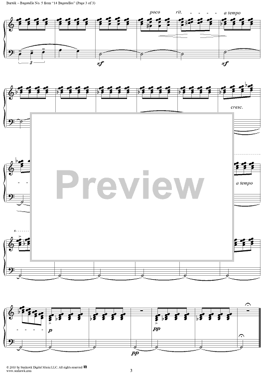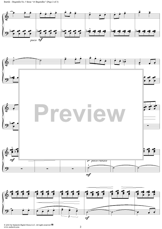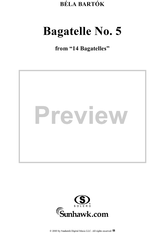 Digital Sheet Music for Bagatelle No. 5 "Vivo" by Bela Bartok scored for Piano Solo; id:293704