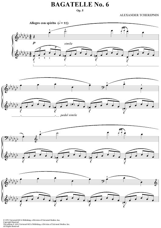 "Bagatelle No. 6" Sheet Music by Alexander Tcherepnin