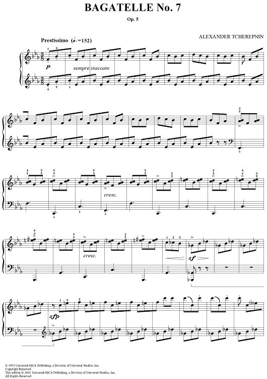 "Bagatelle No. 7" Sheet Music by Alexander Tcherepnin